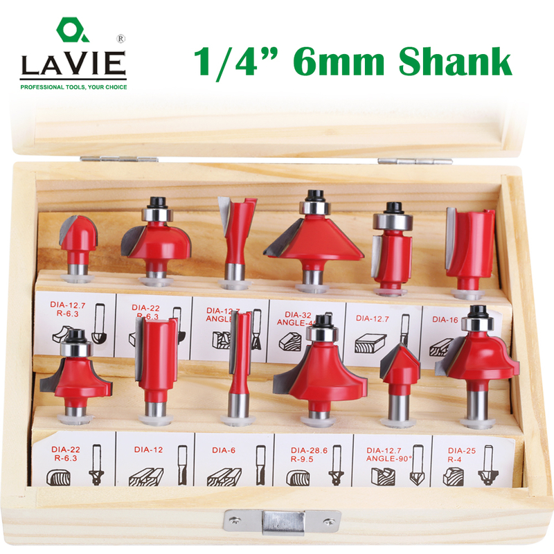 | 12pcs Set Wooden Box Packaging 6mm shank ; 1/4' shank ; 8mm shank ; 12mm shank ; 1/2' shank