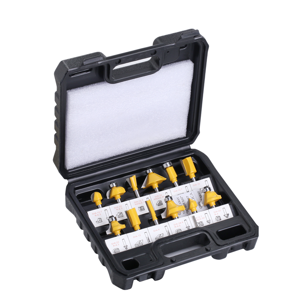 | 12pcs Set Plastic Box Packaging 6mm shank ; 1/4' shank ; 8mm shank ; 12mm shank ; 1/2' shank
