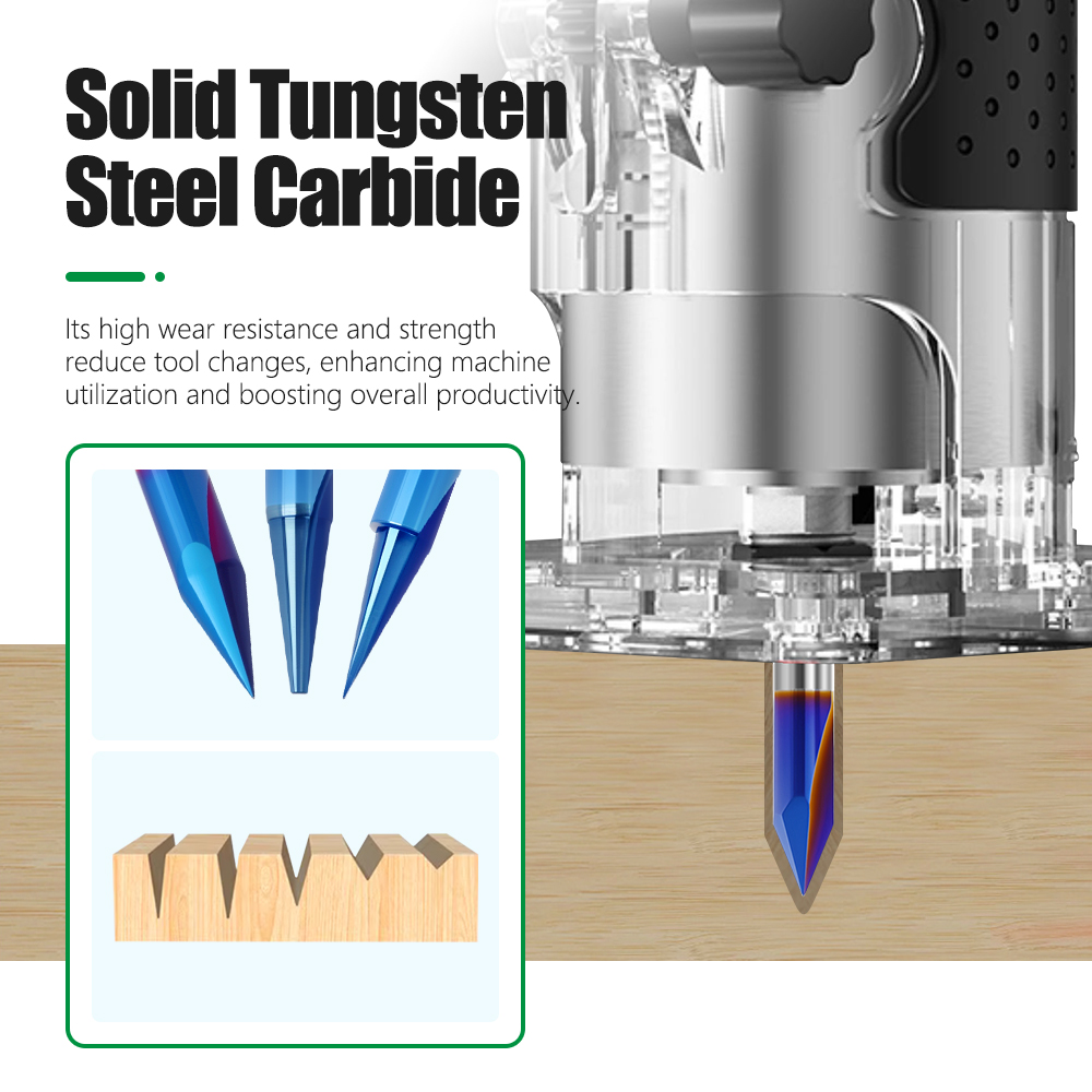The V-shaped design is ideal for fine detailing. The sharp tip easily creates delicate lines, text, relief contours, and 3D carvings. We offer multiple angles (e.g., 15°, 20°, 30°, 45°, 60°), allowing you to choose the best match for different groove widths and depths – from ultra-fine decorative patterns to deep three-dimensional shapes.